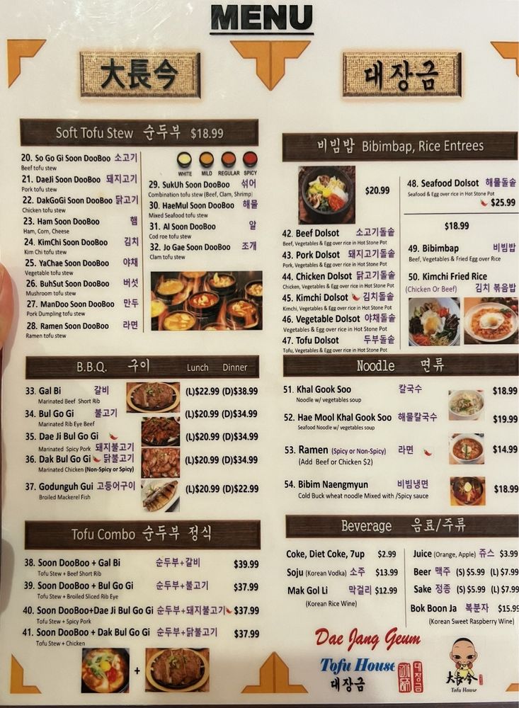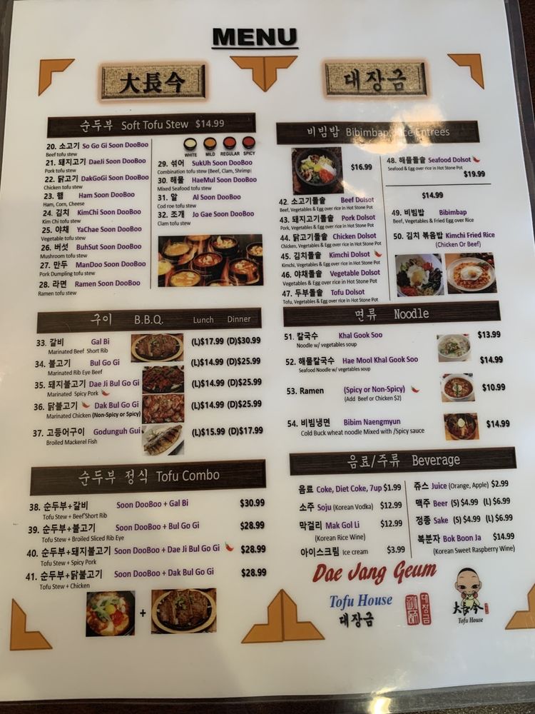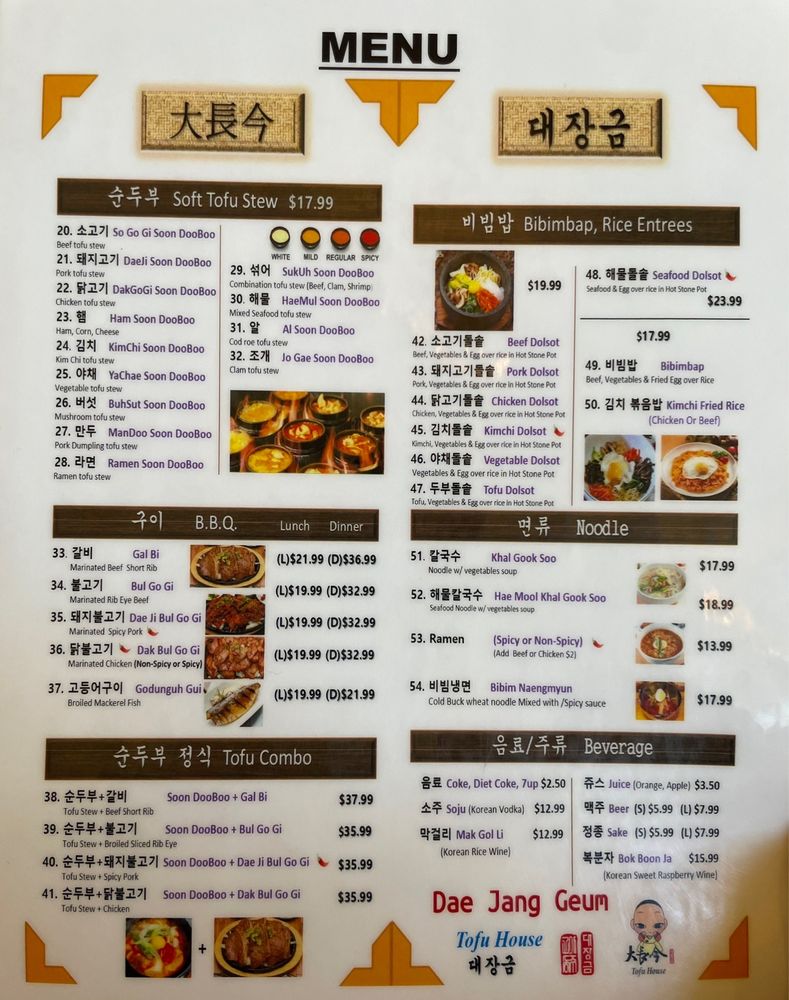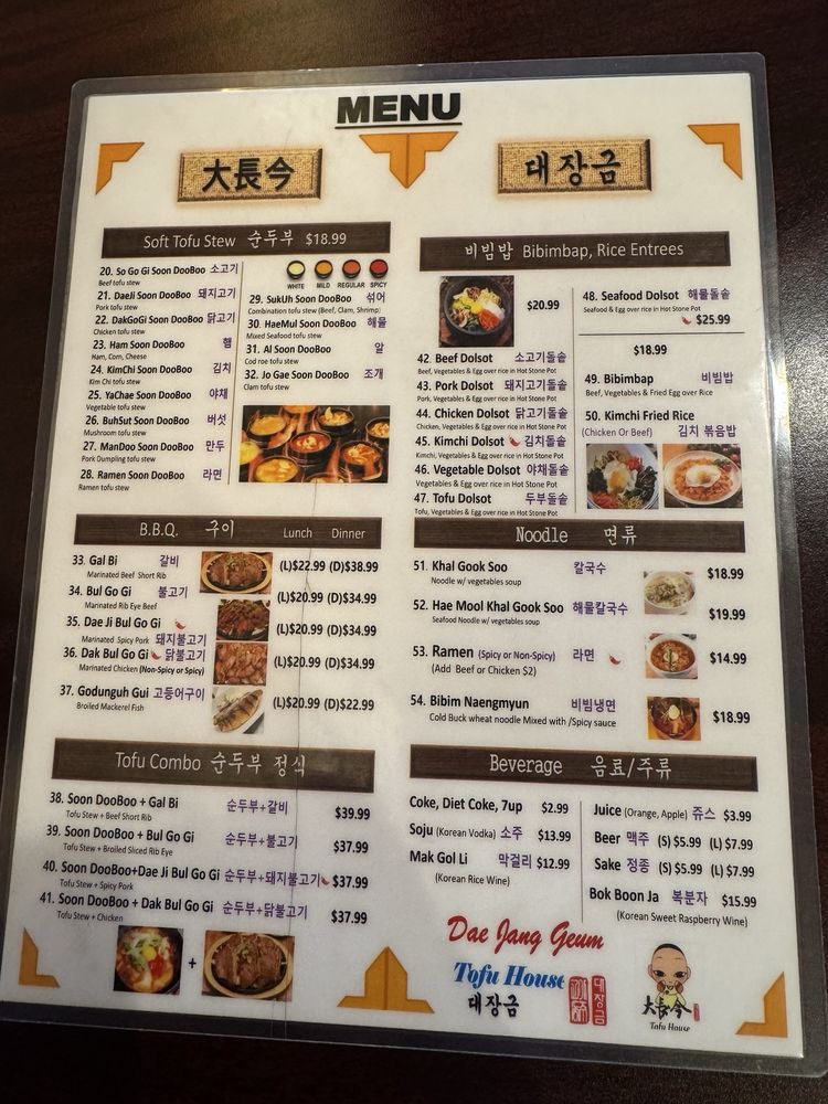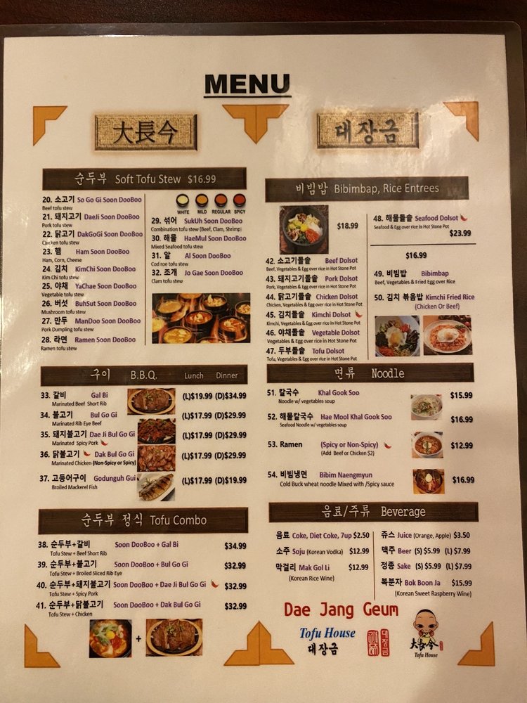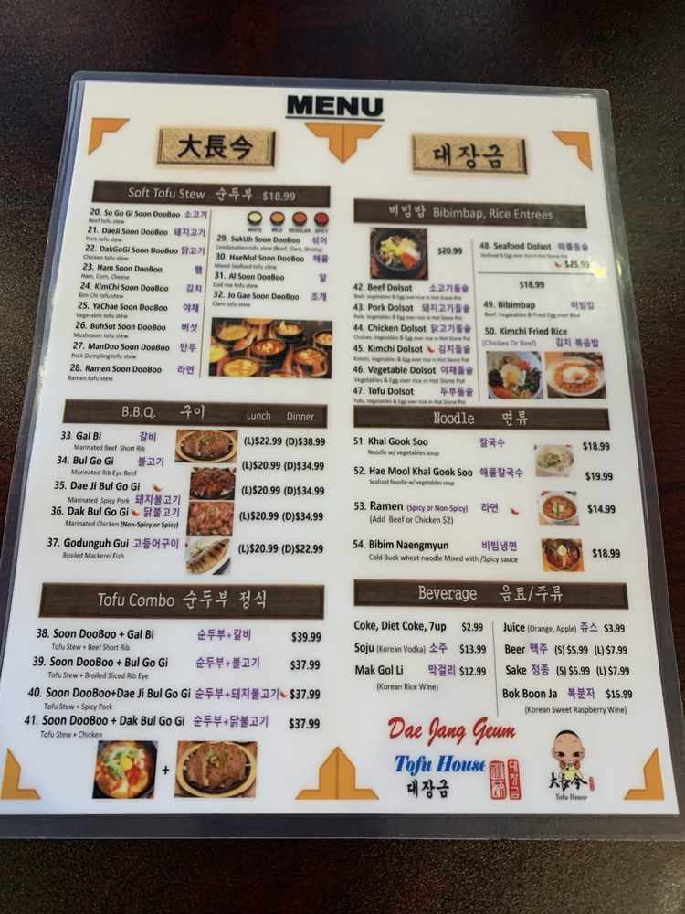 Dae Jang Geum Tofu House Menu