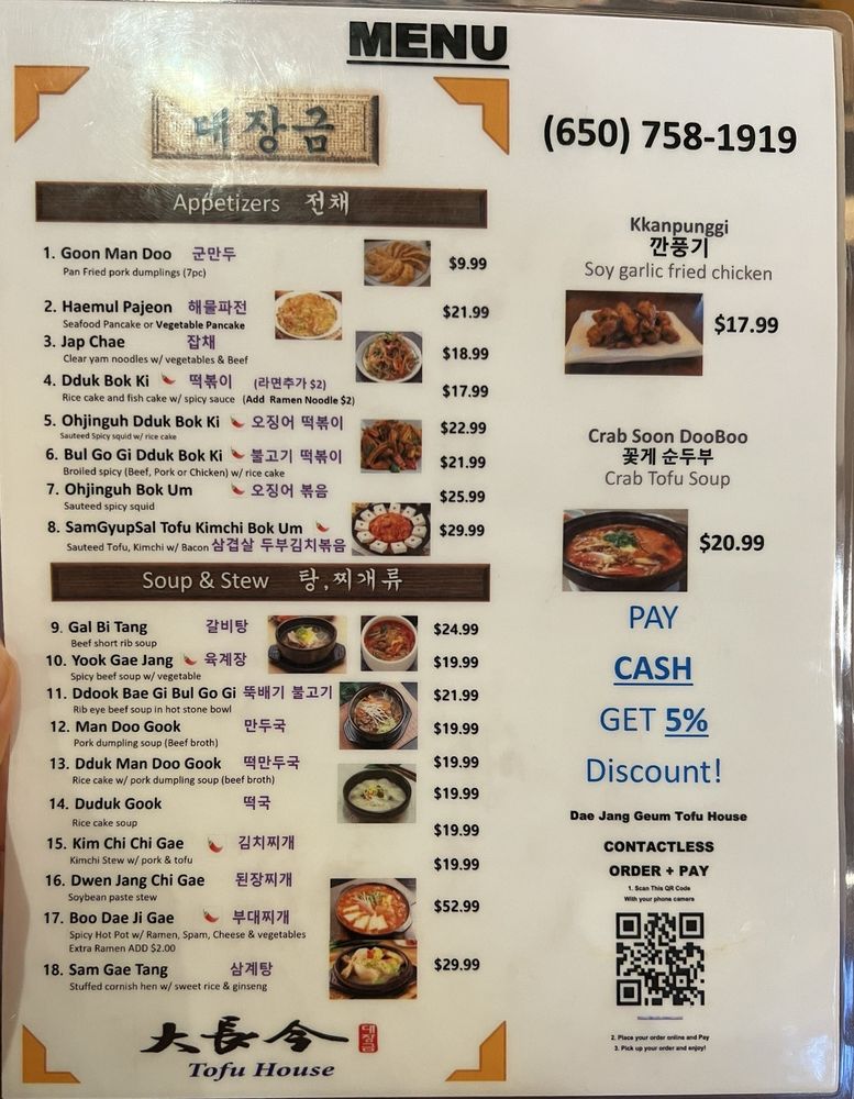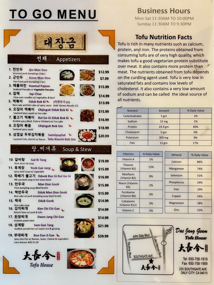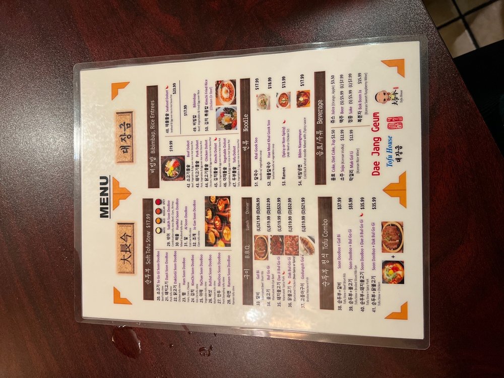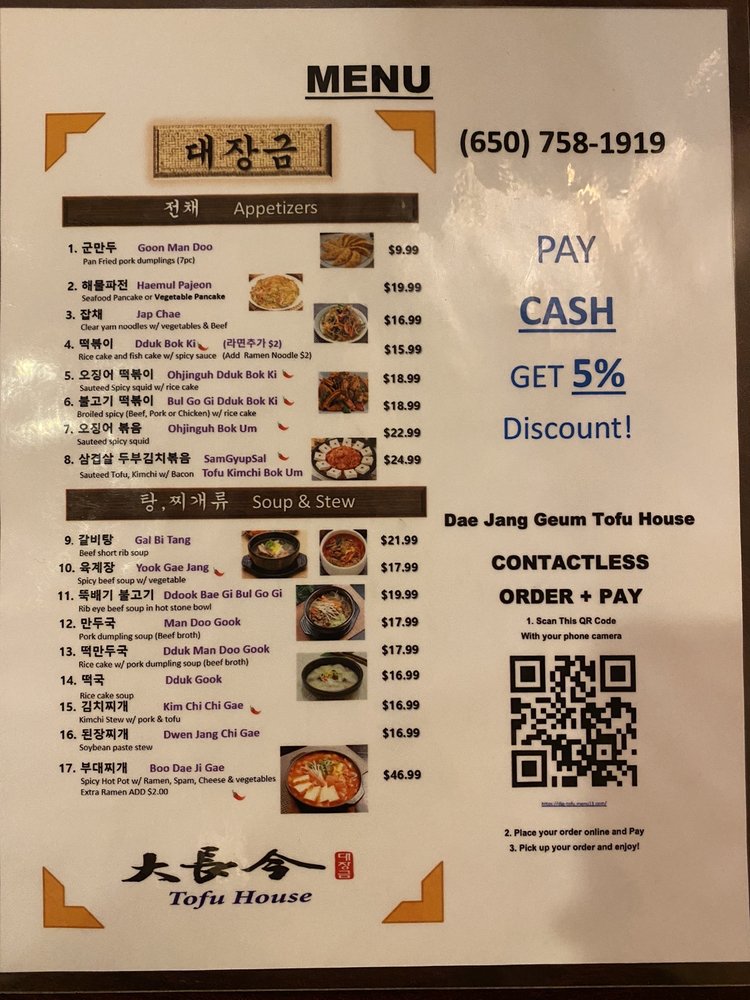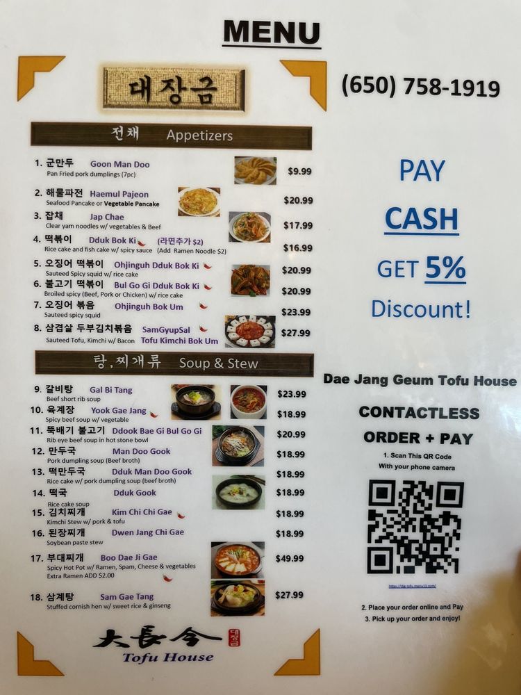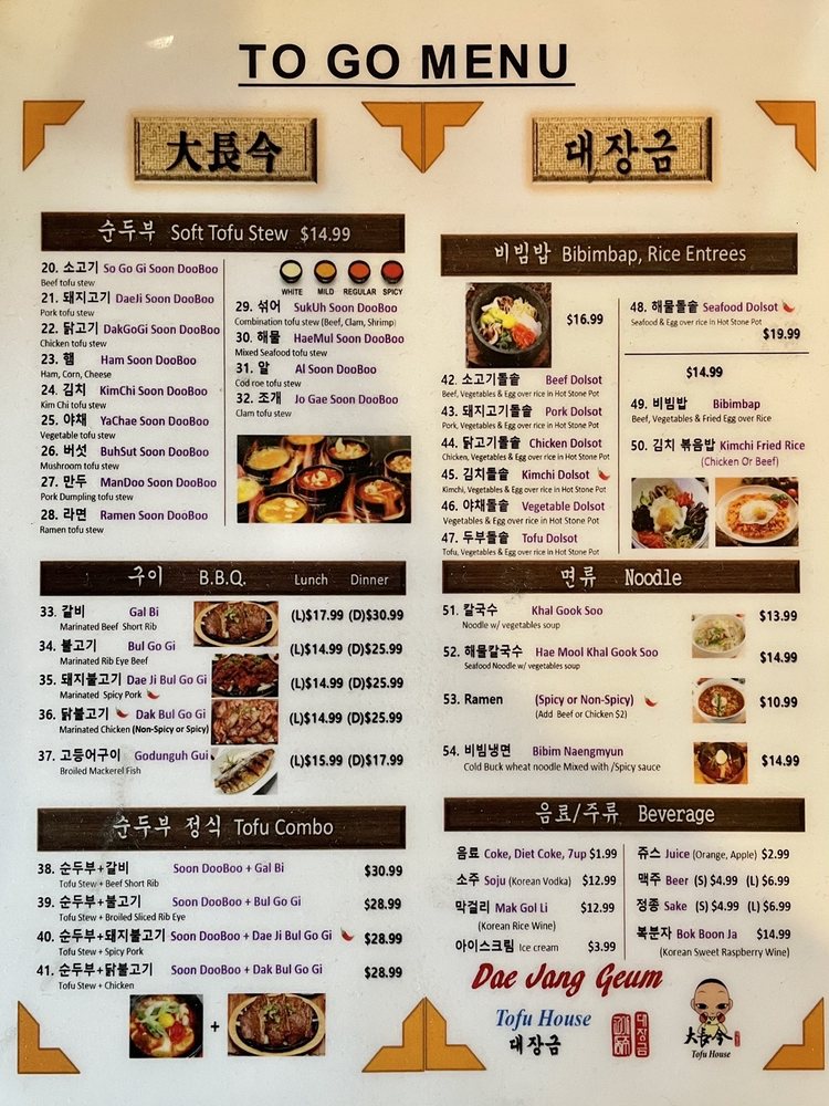 Dae Jang Geum Tofu House Menu